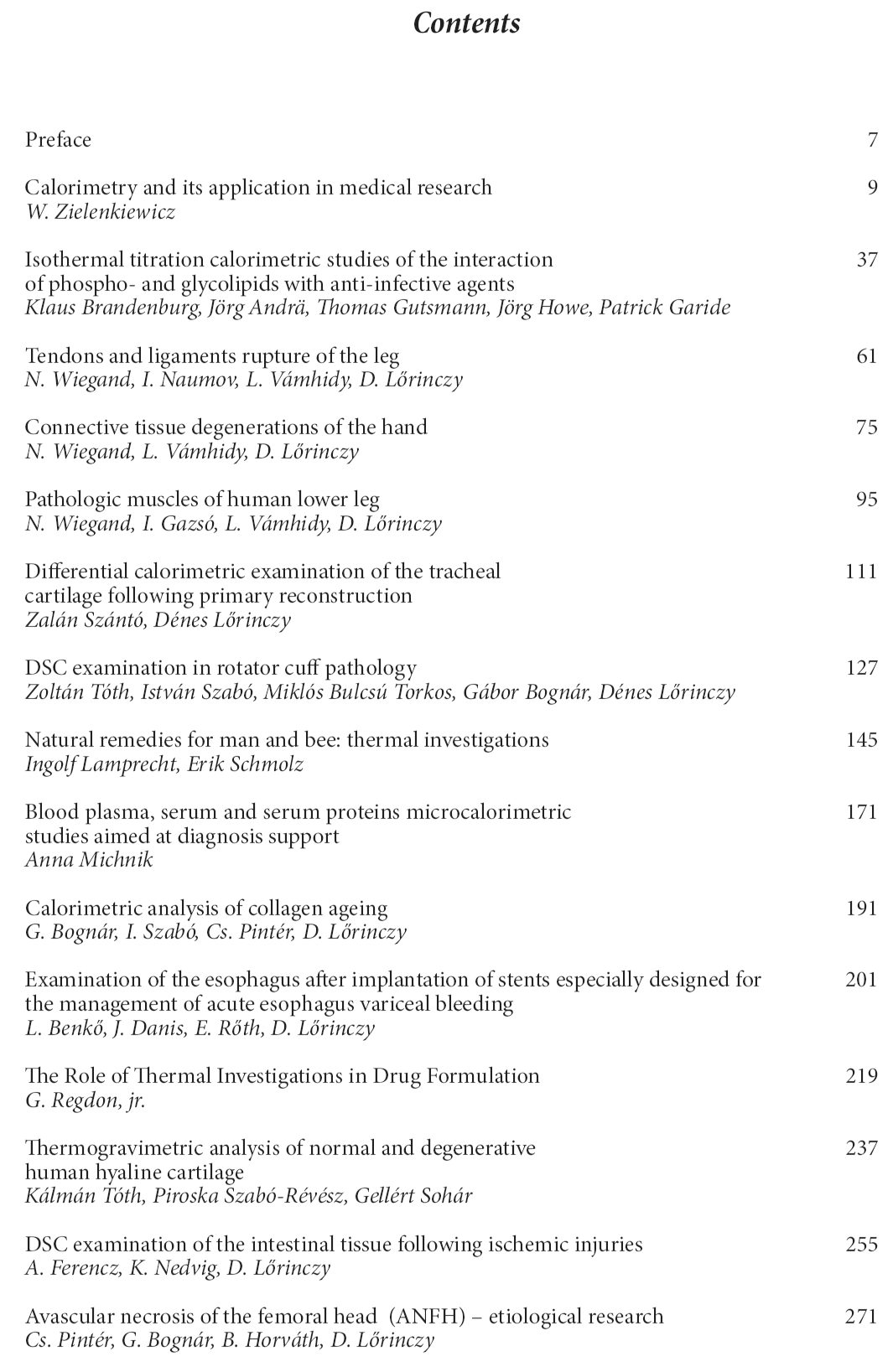 There are plenty of books to discuss the theory of different types of TA/calorimetry but they deal mainly with the general principles and applications chiefly for organic and inorganic materials. The last trends in the secondary and university education clearly show that classical natural sciences (mathematics, physics, etc.) are “stepchildren”. Due to this fact, thermodynamics and its application for biological/medical problems are not in the “middle of the heart” of medical doctors.
